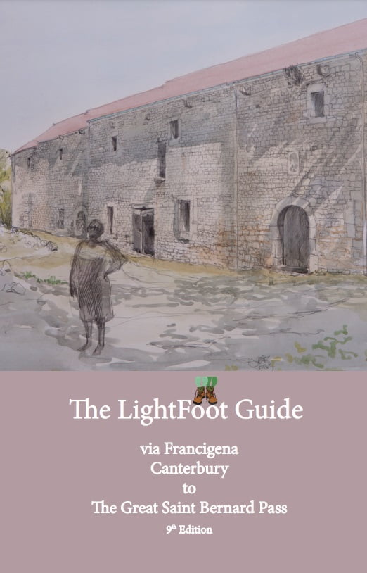 These two volumes are anything but light but they provide a detailed multi-part guide in English for walkers, cyclists and horse riders along the entire route from Canterbury to Rome. Volume One covers the route from Canterbury to the Great Saint Bernard Pass and Volume Two from The Great Saint Bernard Pass to Rome. All three volumes include maps, elevation details, accommodation lists, GPS waypoints and practical facilities such as doctors/vets, internet cafes and Tourist Offices. It is available from Pilgrim Publications in print or ebooks.